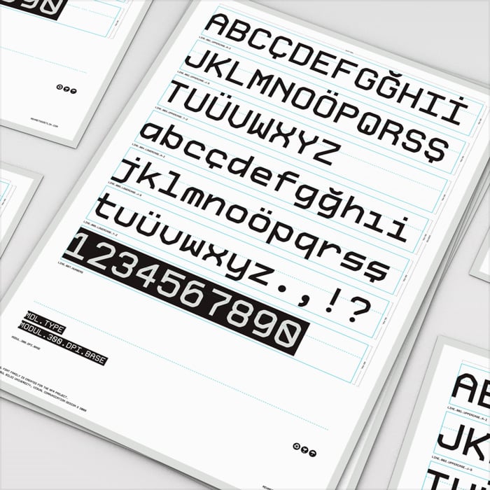 Modul 300 dpi Base was created for graduate thesis. This thesis presents font designs which are capable of covering what is demanded by the "digital age" and discusses the issues that need to be considered regarding the applications within this new age.