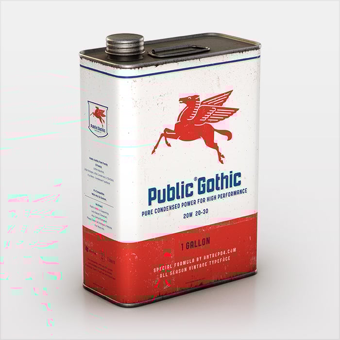 Public Gothic comes with 5 different variations and 3 italics. It's compatible with any OS system.